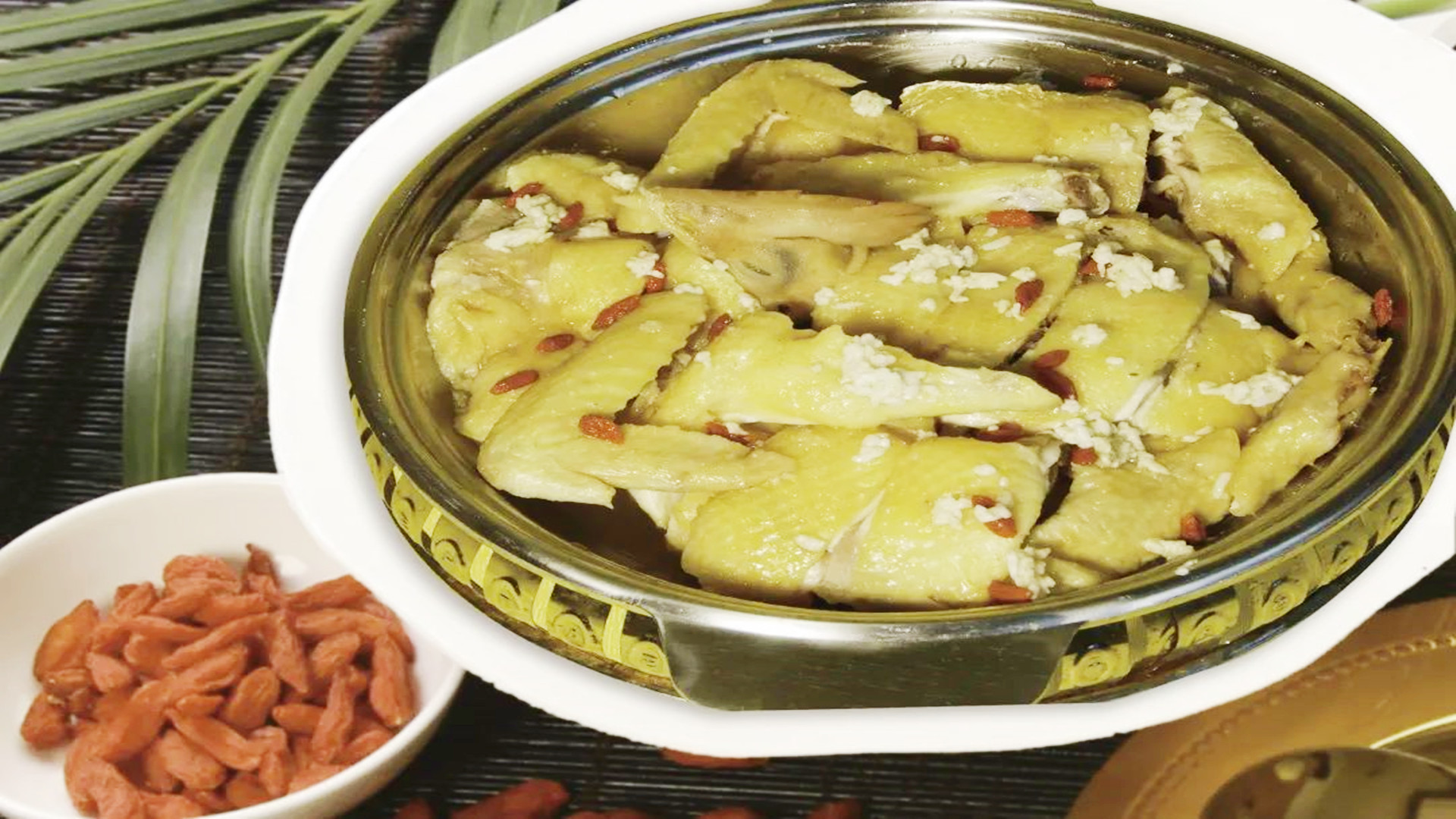 “Chicken Cooked with Salt and Wine in Hakka Style””客家盐酒鸡”.