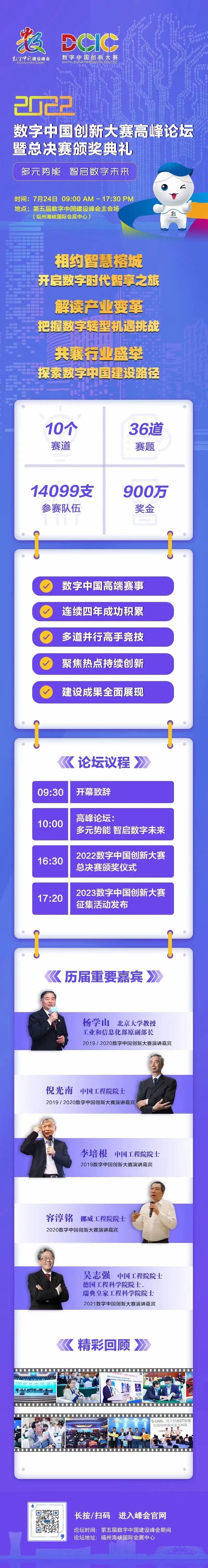 2022数字中国创新大赛高峰论坛暨总决赛颁奖典礼7月24日在福州举办