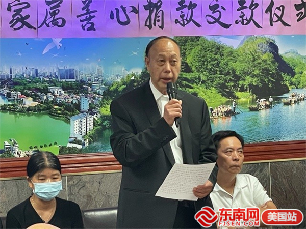 张子阔表示,华人社区有爱、华人社区有温暖,大家共同伸出温暖的双手,给其家属送去关爱和支持,帮助他们度过这艰难无助的时刻。并呼吁侨胞和各界友人捐款,帮助其家属,并感谢华人社区及各界爱心人士的慷慨解囊,这展示了侨界的团结和力量。他对家属表示深切的慰问,希望家属早日走出悲伤并坚强的生活下去,照顾好家庭。最后,他表示捐款可联系美国福建同乡会侨领刘爱华以及张子阔、林慈飞等人。