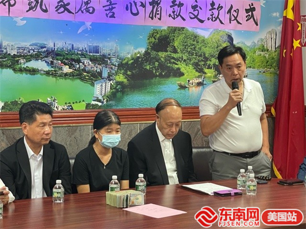东南网美国8月2日讯(本网特约记者 纽约墨人)当地时间7月31日,为事故身亡者邹希凯家属善心捐款交接仪式在美国福建同乡会会厅举行,本次活动由美国福建同乡会常务副主席、美国长乐南乡联合总会主席刘爱华,美国长乐公会名誉主席张子阔,美国福建商会会长林慈飞等发起,将募集善款 20800美元交予其家属。