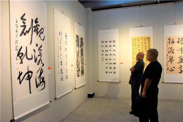 开幕式后,与会嘉宾一起参观画展,并对作品给予高度评价。