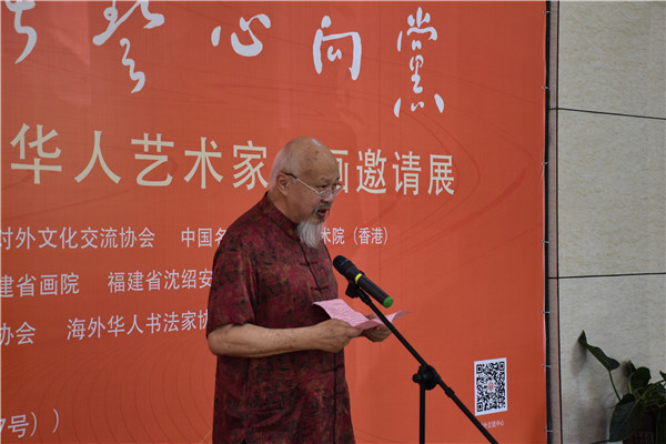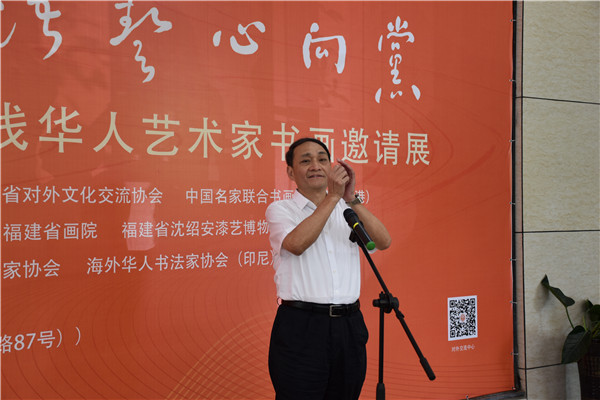 王秋梅代表主办单位致辞。她表示,活动充分发挥文联优势和文艺力量,以书画为纽带,紧密联系“一带一路”沿线国家和地区的华人文化艺术群体,择取展示中国变革和中国精神的题材,以艺术的形式展示“一带一路”建设的伟大成就,彰显自信自强、守正创新的中华文化时代光彩。她希望广大海外华人艺术家常来常往、以“艺”为媒,绘就更多文明互动交融的美好画卷,推动中国、福建与世界各国的交流合作,增强中华文化影响力,为实现中华民族伟大复兴中国梦贡献海内外文艺力量。