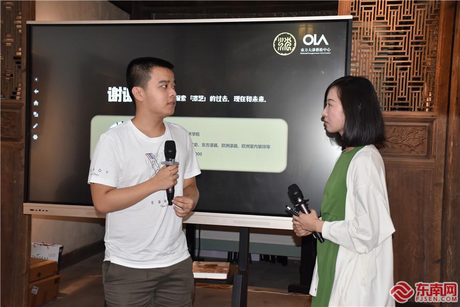 漆艺爱好者(左)与中央美术学院人文学院博士生刘夏凌(右)互动