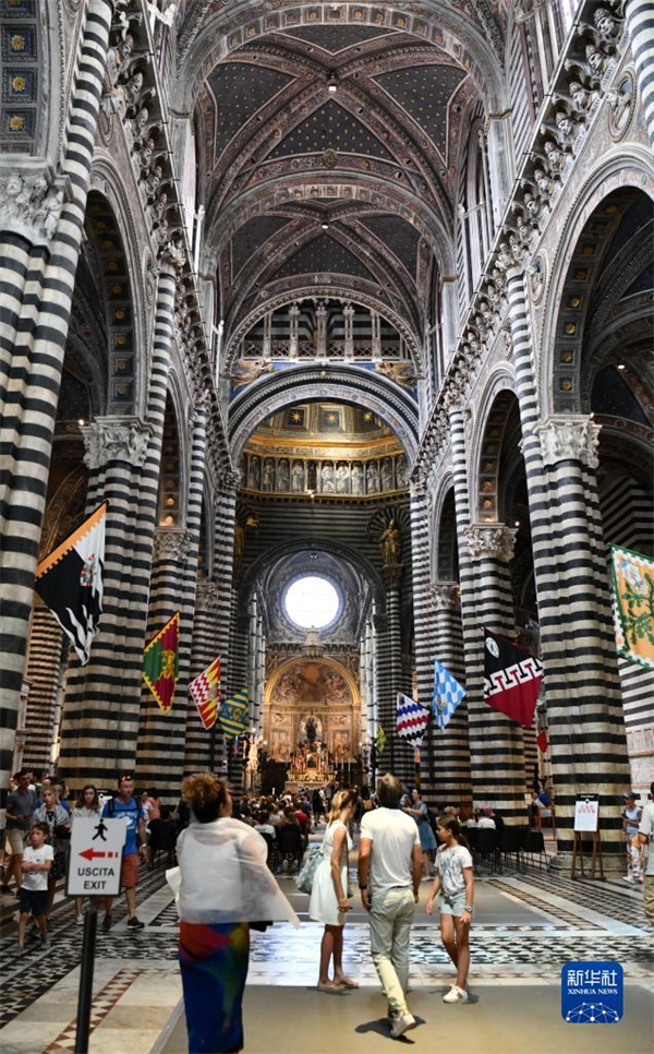 8月15日,游客在意大利锡耶纳主教座堂内参观。