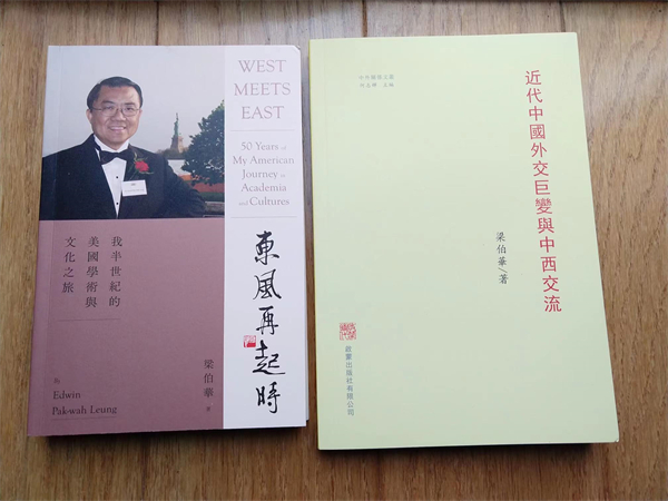 梁伯华自传《东风再起时—我半世纪的美国学术与文化之旅》,最新学术著作《近代中国外交巨变与中西交流》。(受访者供图)