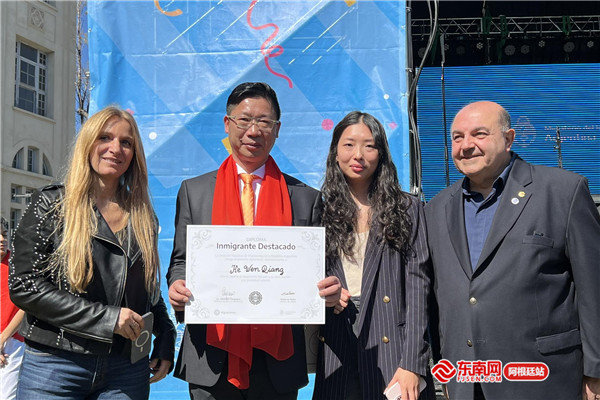 东南网阿根廷9月6日讯(本网特约记者 刘伟 文/图)当地时间9月3日,2022年度阿根廷移民节在当地国家移民局正式开幕。在阿侨胞何文强、陈斌荣获阿根廷国家移民局颁发的2022年度“杰出移民奖”。