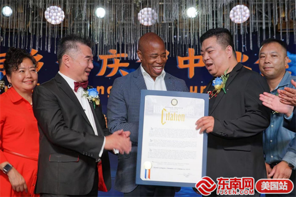 东南网美国9月7日讯(本网特约记者 纽约墨人)当地时间9月5日,在纽约法拉盛举行的“明月相守·拱屿在心”庆贺八月十五中秋晚会上,纽约市长亚当斯为美国拱屿总商会颁发了嘉奖令,以表彰其为社区和经济作出的贡献。