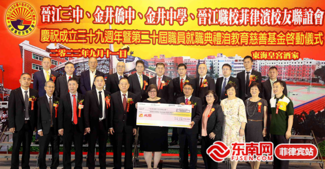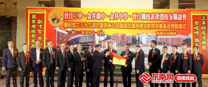 东南网菲律宾9月14日讯(本网特约记者 洪宾宾 文/图)近日,晋江三中、金井侨中、金井中学、晋江职校菲律宾校友联谊会(以下简称“校友会”)成立“教育慈善基金”,同时向“华社尊师重道奖励金”捐赠善款50万菲律宾比索。