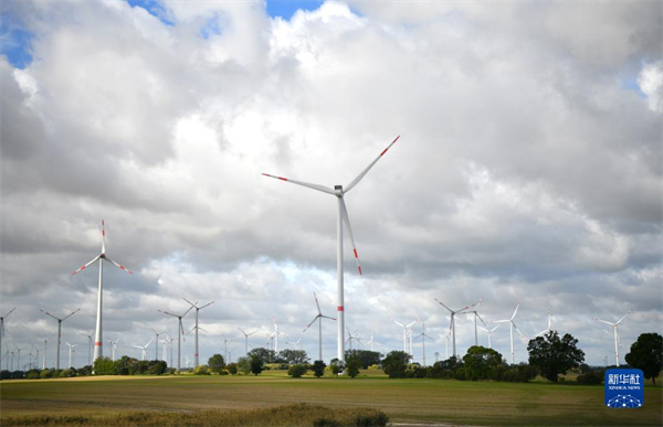 这是9月15日在德国勃兰登堡州拍摄的风电设施。