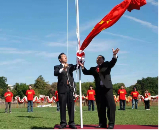 2009年,祖国六十周年华诞前夕,美国白宫前大草坪上庄严升起五星红旗