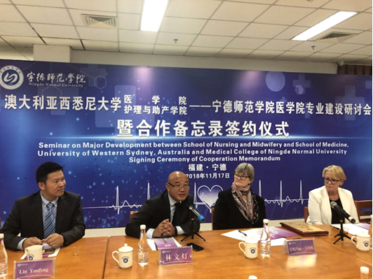 2017年10月,澳大利亚西悉尼大学医学院与宁德师范学院医学院专业建设研讨会暨合作备忘录签约仪式现场