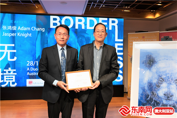 东南网澳大利亚10月29日讯(本网特约记者 一禾)当地时间10月28日晚,由悉尼中国文化中心与澳大利亚AC艺术空间、米歇尔·佩里画廊等共同主办的“无境——中澳名家双人展”(以下简称“双人展”)在悉尼中国文化中心开幕。