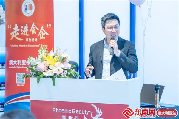 东南网澳大利亚11月3日讯(本网特约记者 一禾)当地时间10月30日,澳大利亚福建总商会(以下简称“福建总商会”)“走进会企”系列活动第十站在澳大利亚凤雅堂集团举行。澳洲侨界、商界代表和福建总商会会员百余位嘉宾出席了活动。