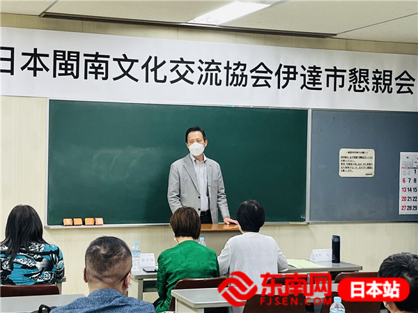 日本闽南文化交流协会创会会长黄四川在交流恳亲活动发言(黄汇杰 摄)