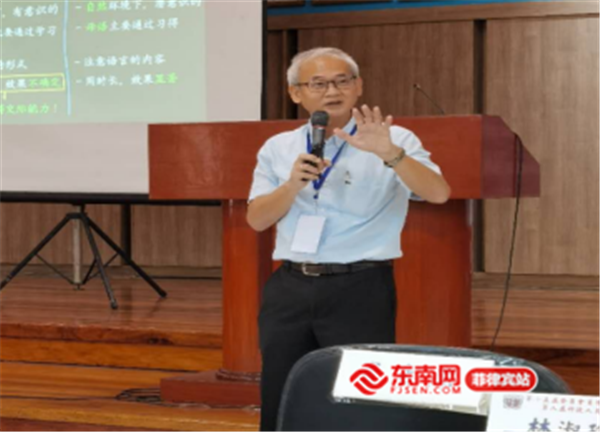 华文教师洪新涵为与会人员主讲了《简论菲律宾华语教师如何迈向国际中文教育的专业发展计划》。她向在座的华文教师们讲授了要如何借鉴国际先进理念以提升菲律宾华语文教育水平,还和与会人员讨论了关于课后学习与辅助、学生的个性与感受、学生专业技能发展与提升等话题。
