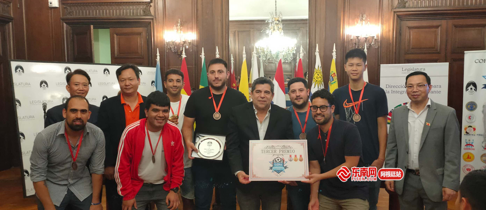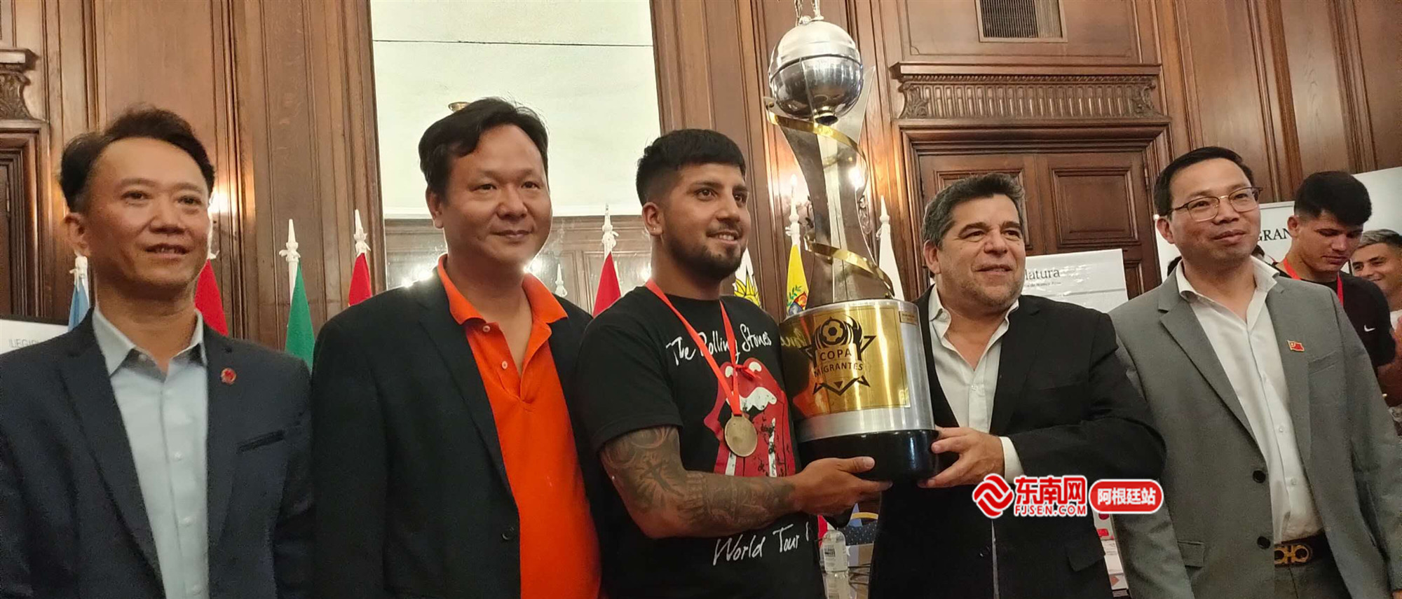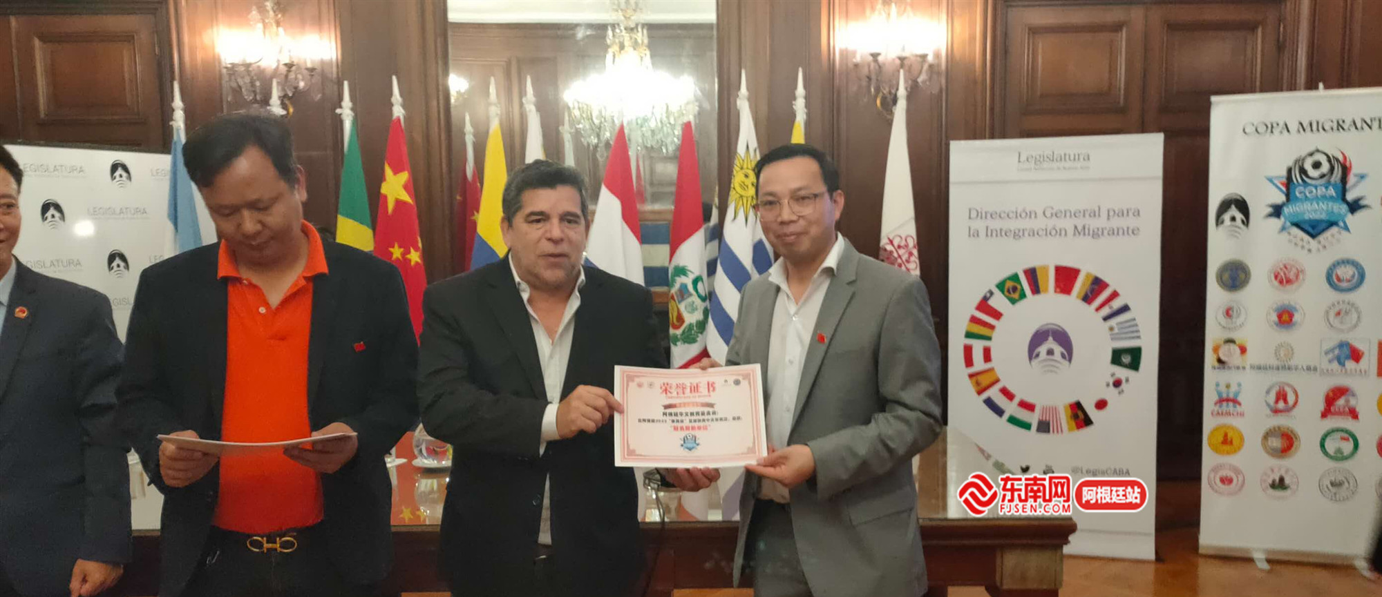 东南网阿根廷11月25日讯(本网特约记者 丽萨 文/图)为庆祝中国与阿根廷建立外交关系50周年,当地时间11月23日,2022阿根廷“移民杯”足球联赛颁奖典礼在阿根廷布市立法院隆重举行。