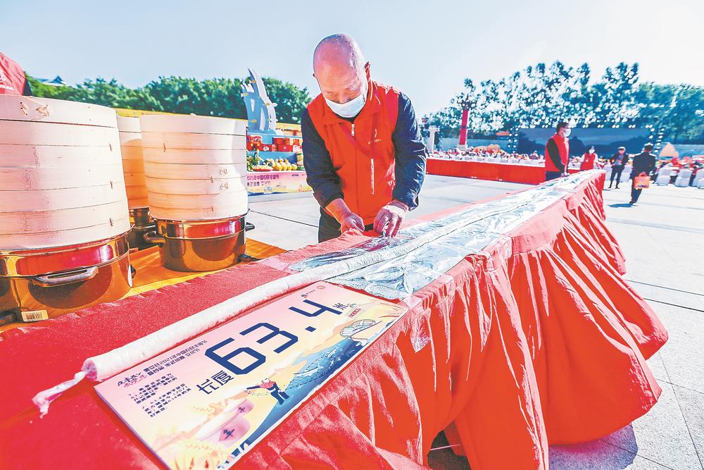 图③:首届崇武鱼卷节展示63.4米的鱼卷。