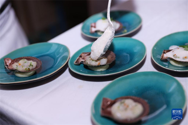 这是11月28日在位于巴黎的法国外交部举行的榜单揭晓活动现场拍摄的美食。