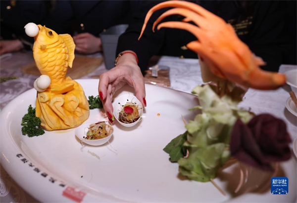 这是11月28日在位于巴黎的法国外交部举行的榜单揭晓活动现场拍摄的中国美食。