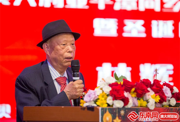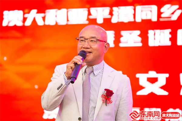 来澳30年的第一批平潭籍侨胞代表、同乡会荣誉会长冯敦平致辞,他表示作为平潭人他深感自豪,“第一批来澳大利亚的平潭人大概有几十人,大家积极融入了当地社会,并通过努力创造很多的财富。”