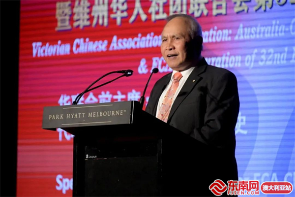 华联会新任主席陈运国致开幕辞,他回顾了中澳建交50年的珍贵历史,以及澳洲华侨华人在推动中澳民间友好交流和合作、促进两国民间关系发展,发挥桥梁和纽带作用。他期待中澳两国本着相互尊重、求同存异的精神,相向而行的原则,共同谱写出中澳关系的新篇章。