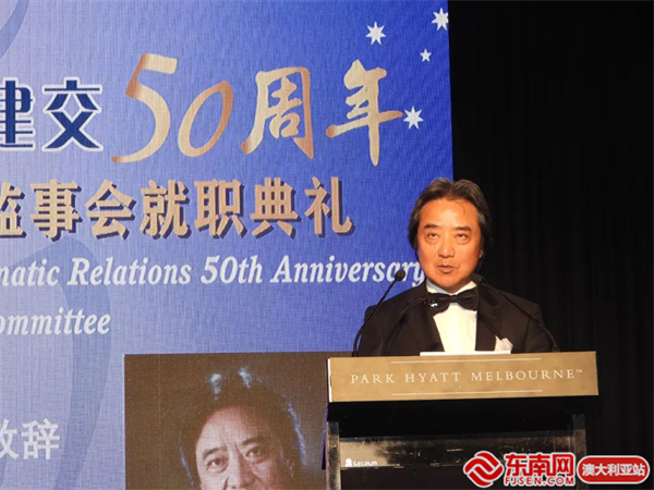 中国驻墨尔本总领馆代总领事曾建华致辞,他表示过去几年,中澳关系经历了山重水复疑无路的困难,到如今柳暗花明又一村的喜悦。还提到了近两个多月,参加了澳大利亚政府及华侨华人组织的多个庆祝活动,充分体现了广大侨胞及澳大利亚社会各界对改善中澳关系的热切期盼。50周年对于中澳来说有着重要的、特殊的意义,期待中澳双方以此为契机,为两国关系创造更加美好的未来共同努力。