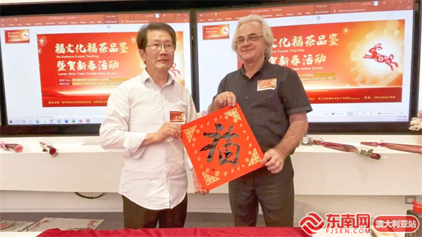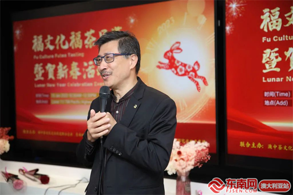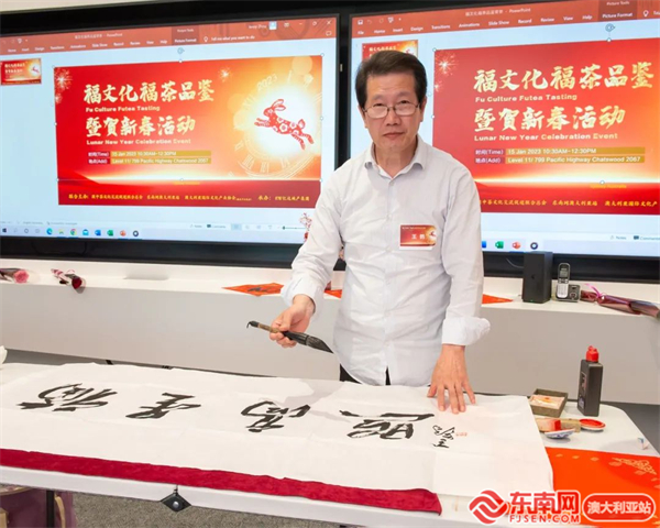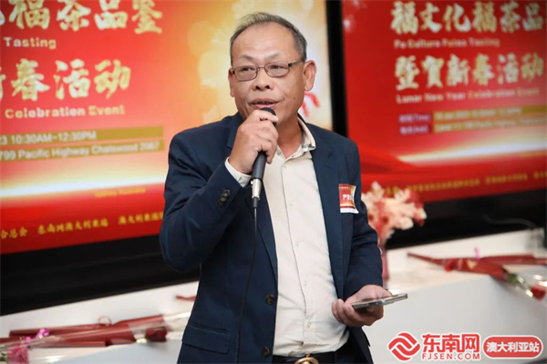 “‘福’是吉祥美好事物的集合体,福建省是以“福”命名的省份,“福”文化在福建有着深厚底蕴和历史传承。”东南网澳大利亚站站长吴雷蒙致辞。他表示,很荣幸能为福建的“福”文化和福茶文化在澳大利亚的推广尽一份力,希望大家新的一年福气满满。吴雷蒙还回顾了东南网澳大利亚站自成立以来的发展历程,他表示未来将继续扎根社区,和各华人社团保持良好的沟通和合作,创新优质媒体内容,更好地服务闽籍侨胞和华人社区,并畅谈今后包括栏目建设、福文化、海丝文化推广等发展规划。