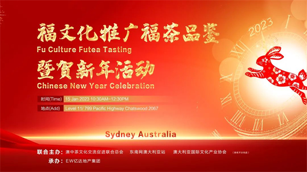 东南网澳大利亚1月18日讯(本网特约记者 一禾)当地时间1月15日,由澳中茶文化交流促进联合总会、东南网澳大利亚站、澳大利亚国际文化产业协会主办,亿达房产承办的福文化推广——福茶品鉴暨贺新年活动在悉尼举行。