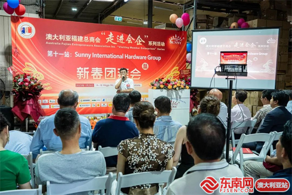 东南网澳大利亚2月2日讯(本网特约记者 一禾)当地时间1月29日,澳大利亚福建总商会(以下简称“福建总商会”)举行“走进会企”系列活动第十一站阳光国际五金集团活动暨新春团拜会。来自澳大利亚侨界、商界的代表和福建总商会会员共200多人参加活动,共庆佳节。