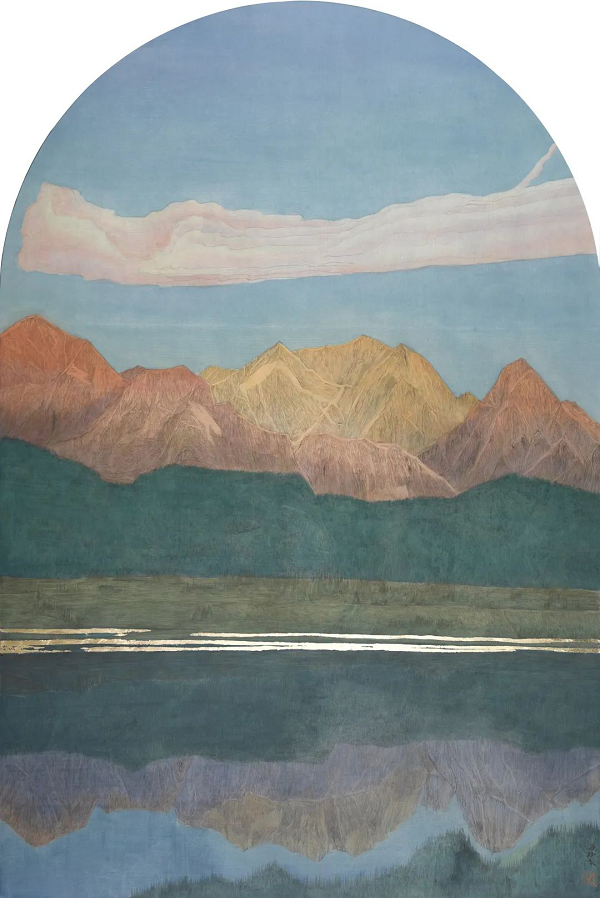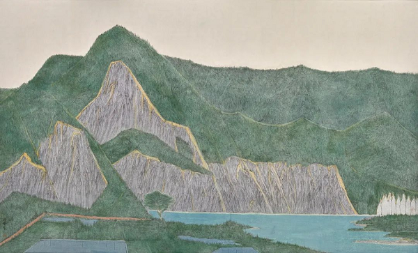 《静水青山》尺寸:120x200cm,彩墨绢本,2023年