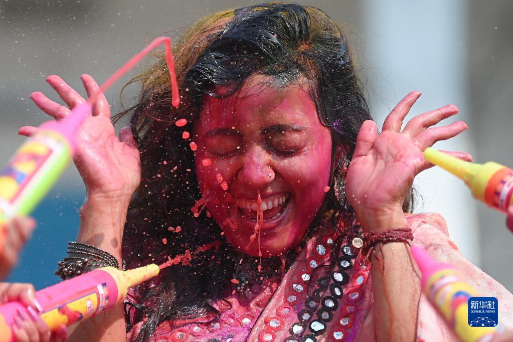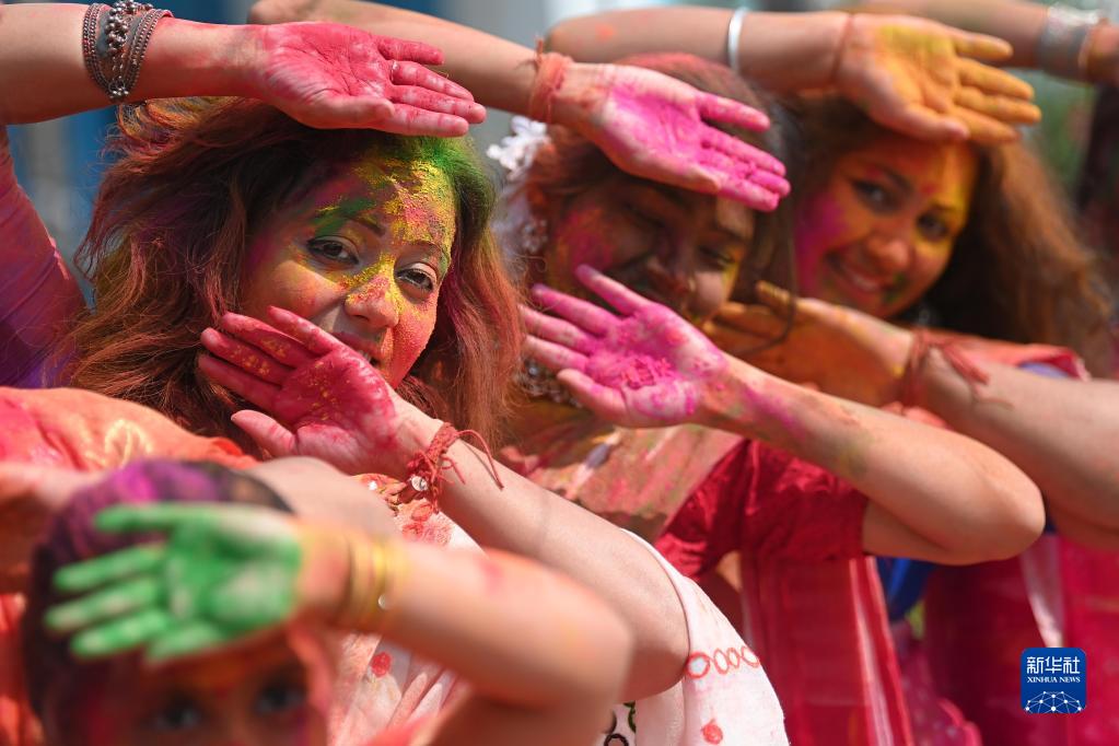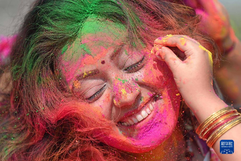 洒红节也叫胡里节,人们在节日期间互相涂抹颜料,迎接春天的到来。