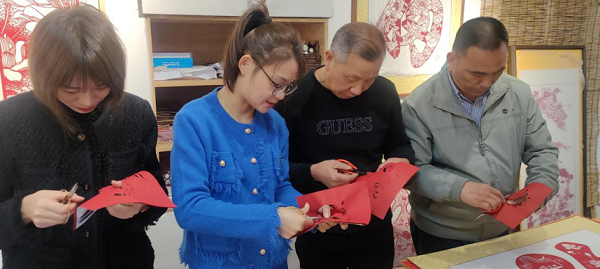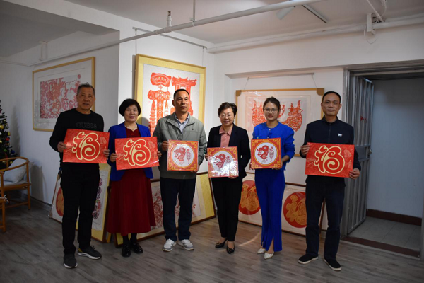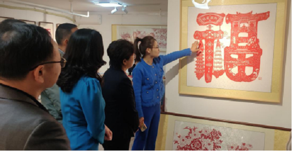 向美国福建工商总会、美中茶文化交流协会赠送“福”字和非遗剪纸艺术品
