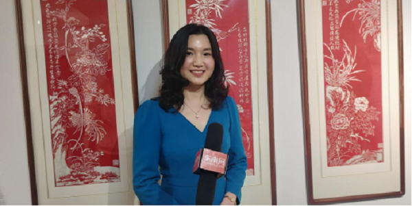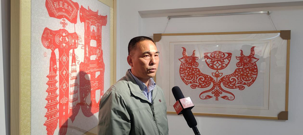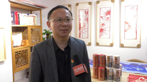 福建省剪纸艺术家、福建十方剪工作室负责人陈艺敏接受东南网记者采访
