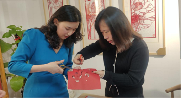 现场,嘉宾们参观了福建十方剪工作室剪纸作品,闽籍侨团代表亲自动手体验了剪纸。值得一提的是,陈艺敏还手把手教侨团代表剪纸技巧。侨团代表表示,剪纸艺术是中华优秀传统文化,通过一把把剪刀、一张张纸,就能做出惟妙惟肖的艺术作品,这让他们感受到了剪纸艺术的奥妙。