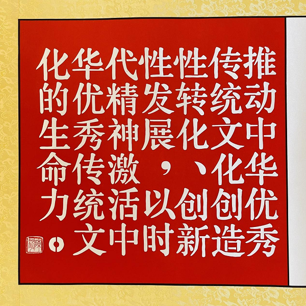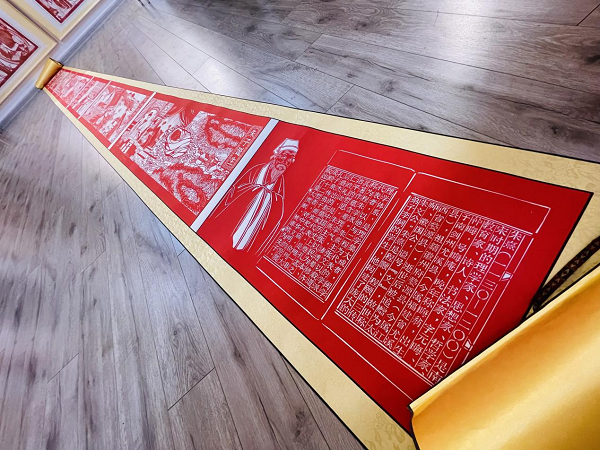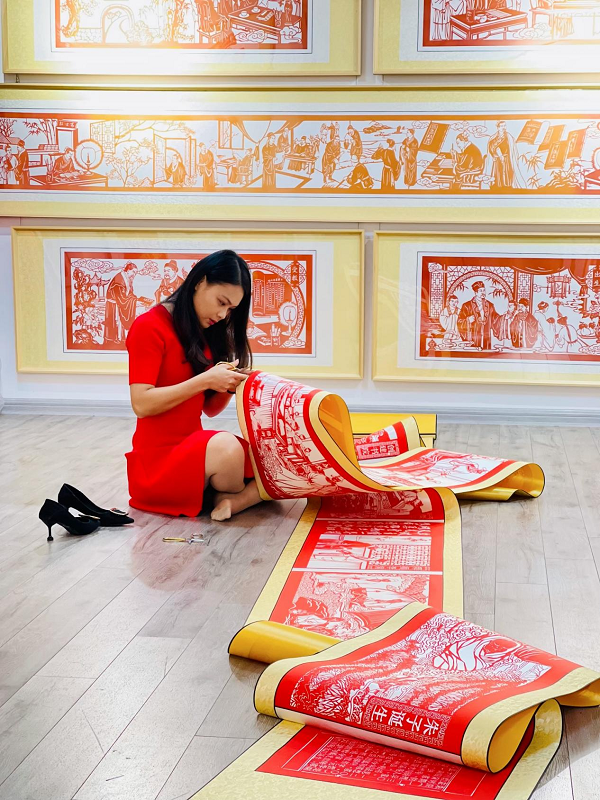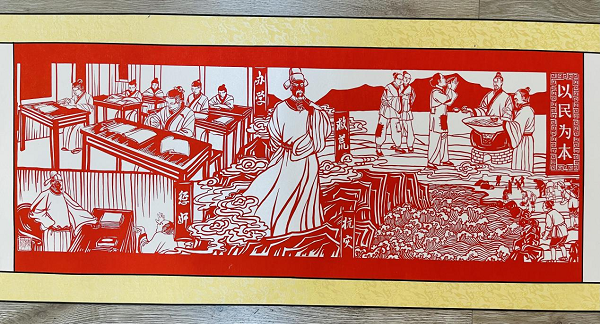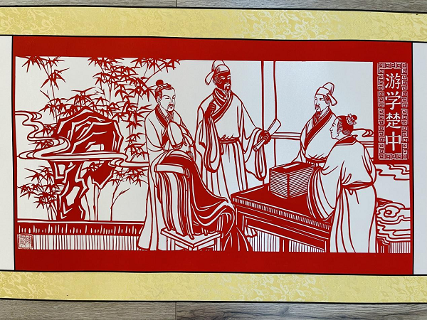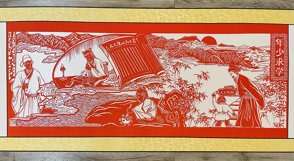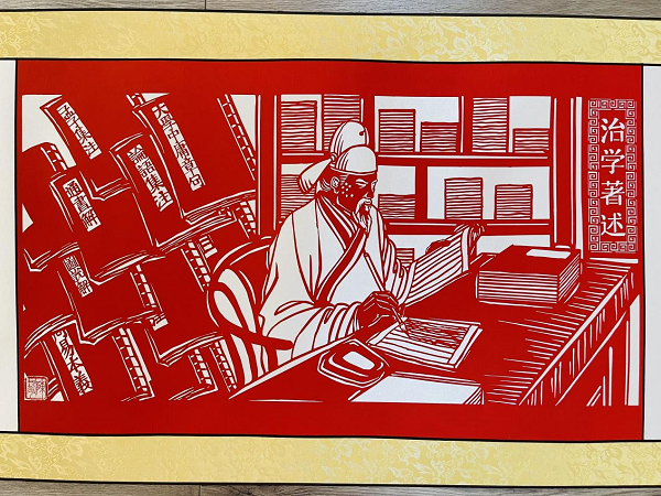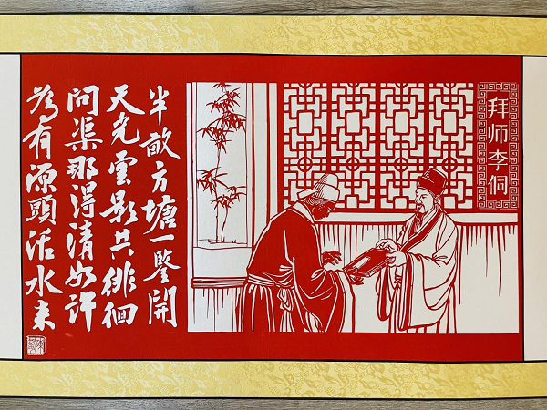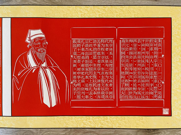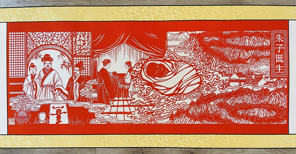 由福建省剪纸艺术家陈艺敏创作的《朱子圣迹》剪纸作品约10米长,包含十个部分,分别是:朱熹简介和朱熹画像、朱子诞生、年少求学、拜师李侗、以民为本、慰女儿贫、游学楚中、治学著述、创建书院以及贯彻落实习近平总书记在武夷山朱熹园考察时的重要讲话精神。