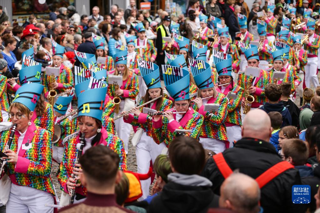 3月19日,在比利时东部的小城斯塔沃洛,乐手在狂欢节游行上演奏。