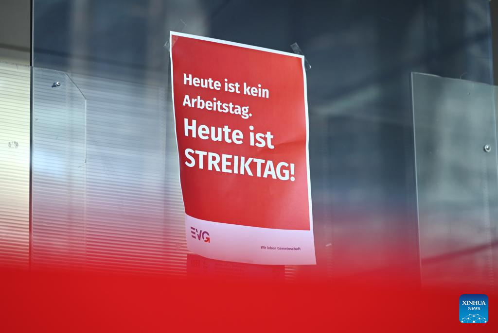 BERLIN, March 27 (Xinhua) -- Nationwide strikes in Germany brought train, bus, and airplane traffic to a virtual standstill on Monday, affecting millions of travelers. Freight traffic was also heavily disturbed.