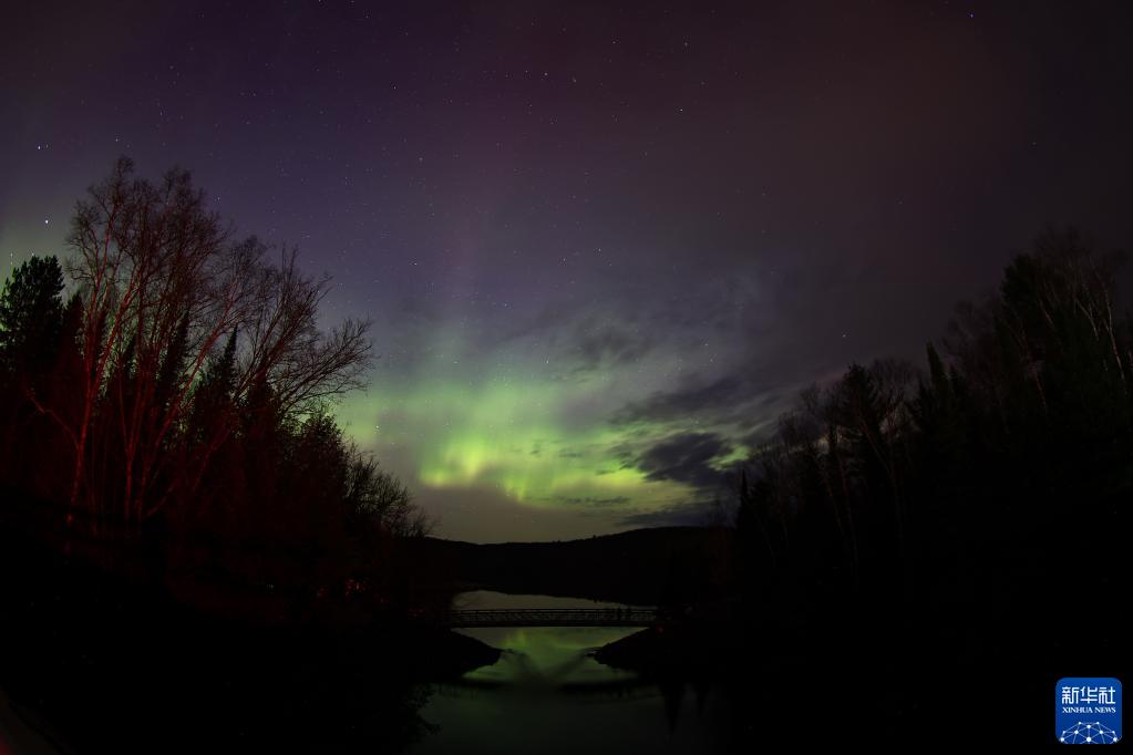 这是4月23日在加拿大安大略省阿罗黑德省立公园拍摄的极光。