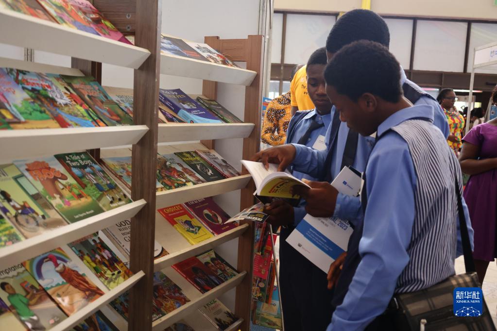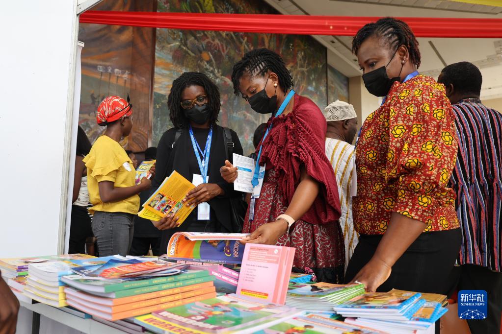 4月24日,在加纳首都阿克拉举办的图书展上,人们在展台前浏览图书。