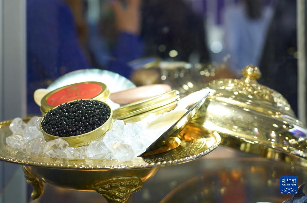 这是4月25日在西班牙巴塞罗那举行的全球水产品博览会上拍摄的鱼子酱。