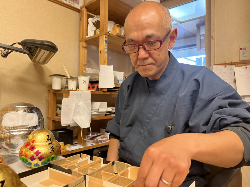 特约记者还来到金箔屋作田屋进行现场观摩,并采访了石川县箔工商业协同组合理事长董事作田一则。
