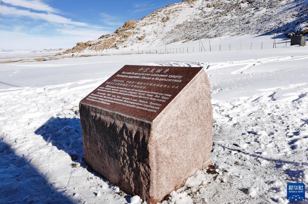 这是2022年11月26日在吉尔吉斯斯坦纳伦州拍摄的“中吉友谊井”纪念石碑。