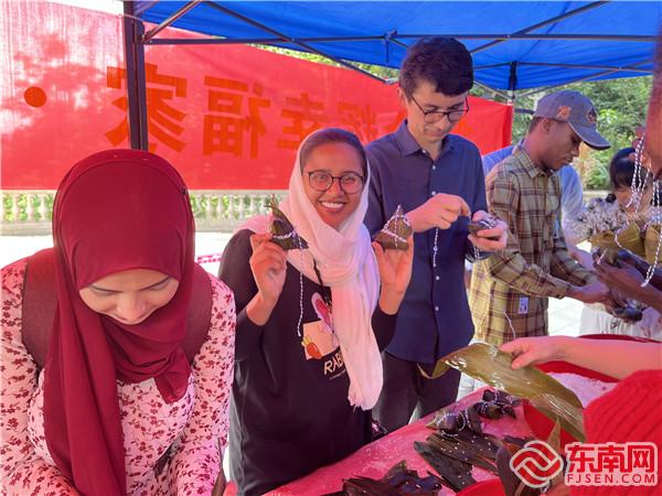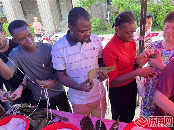 东南网6月25日讯(记者 王文青 通讯员 黄剑峰)日前,在端午节来临之际,福建农林大学“一带一路”留学生福文化研习社的留学生们前往福州建新镇淮安社区,与社区居民一起包粽子,并在研习社同中国学生一起编彩绳、做香囊、投壶,沉浸式体验节日民俗、感受文化魅力。