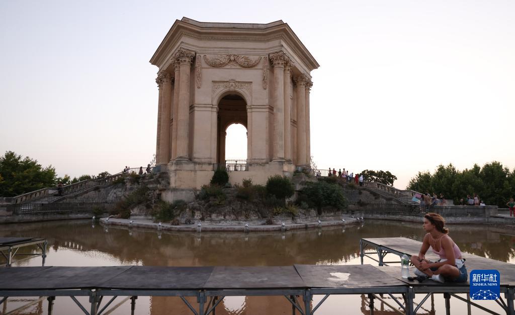 这是法国蒙彼利埃佩鲁皇广场上的水塔(7月17日摄)。