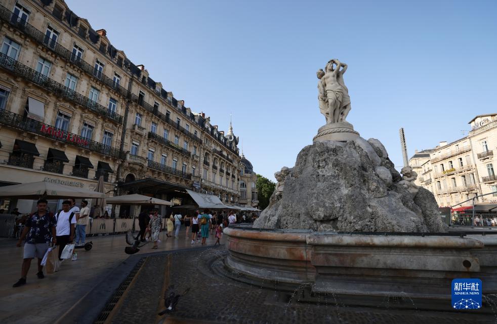 这是法国蒙彼利埃的佩鲁皇广场(7月17日摄)。