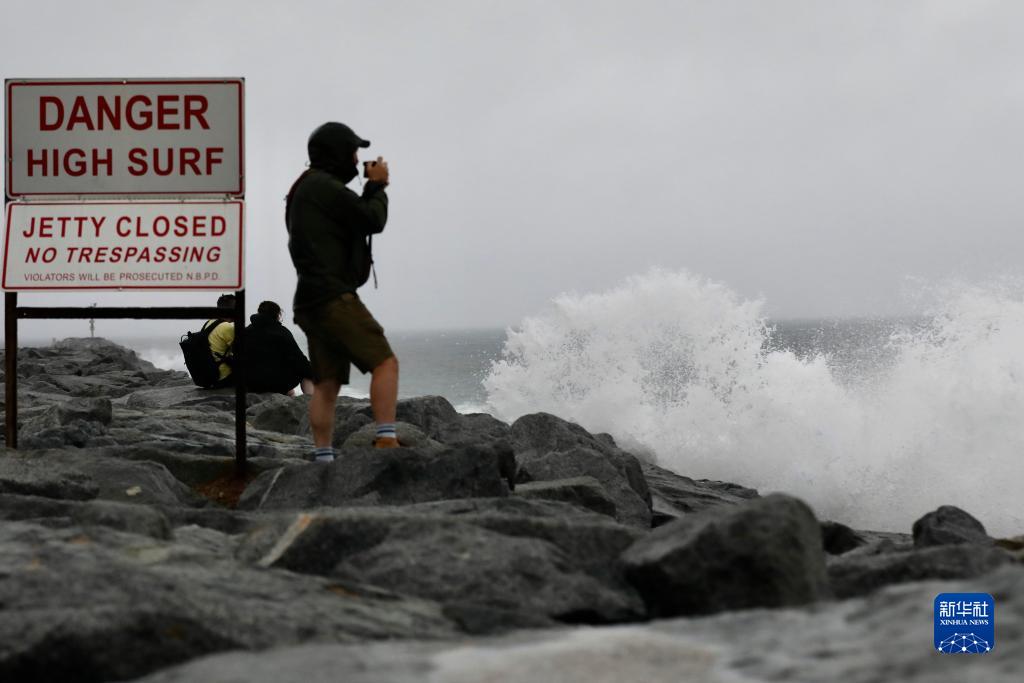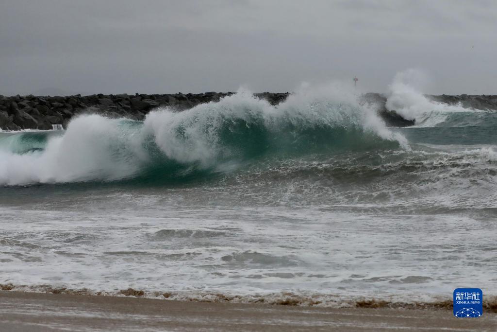 8月20日,海浪拍打美国加利福尼亚州纽波特比奇海岸。