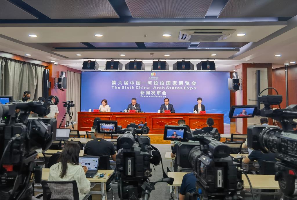 图为第六届中国—阿拉伯国家博览会新闻发布会现场。新华社记者靳赫 摄