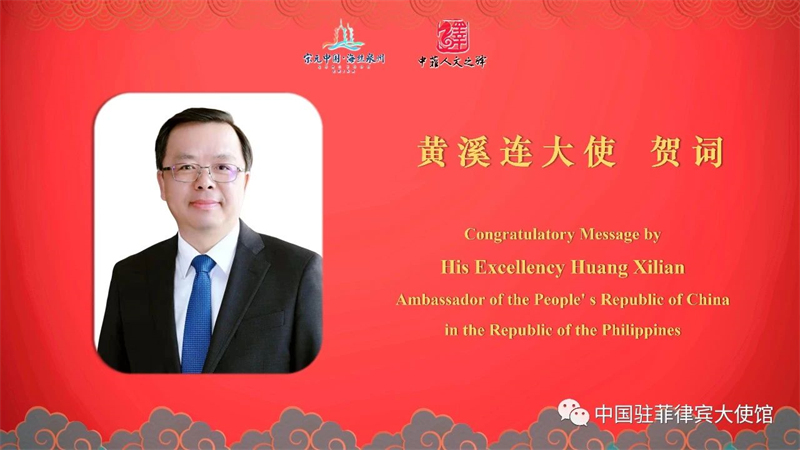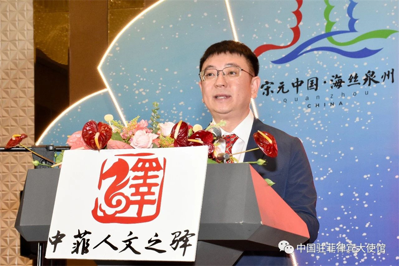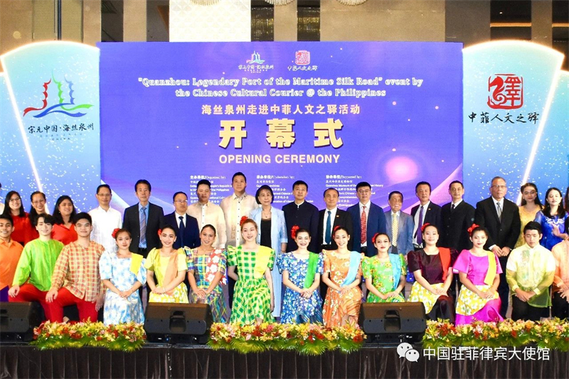 黄溪连大使在贺词中表示,中菲传统友谊缘起海上,绵亘千年之久。泉州作为中国古代海上丝绸之路重要起点和宋元中国的世界海洋商贸中心,泽被深远、融贯古今,在推动中菲文明交流互鉴的历史长河中留下浓墨重彩一笔。此次“中菲人文之驿”活动聚焦海丝泉州,推出三大主题展览,以不同视角溯源中菲传统友谊,让更多观众透过光影艺术一窥宋元中国文明气度,聆听古城时代脉搏,从古朴珍贵的族谱、侨批中追寻先辈足迹,感知老一辈菲律宾华人华侨深沉的桑梓情怀。同时,还邀请当地知名艺术表演团体,共襄一场中菲“美美与共”的视听盛宴。期待通过此次活动,中菲两国赓续传统友谊,增进人民相知相亲,筑牢友好民意根基。