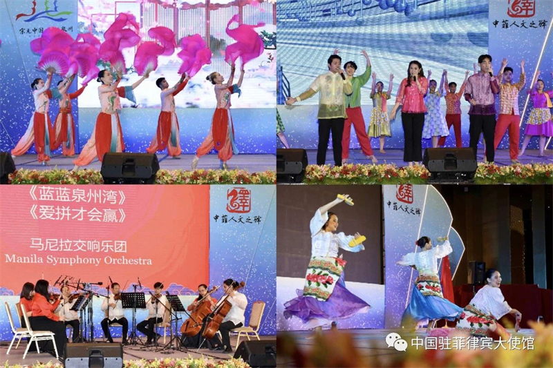 活动上,菲巴雅尼翰民族舞蹈团、马尼拉交响乐团、华星艺术团等本地团体带来精彩文艺演出。一段秀逸韵致的中国传统舞蹈《翩翩起舞》拉开演出序幕,交响乐演奏《爱拼才会赢》《蓝蓝泉州湾》让人思绪万千、回味无穷,唤起了观众与泉州这座历史文化名城的心灵共振,菲民族舞演员婀娜多姿、辗转腾挪,用热情洋溢的歌舞演绎中国民歌《康定情歌》。活动现场高潮迭起、掌声雷动。