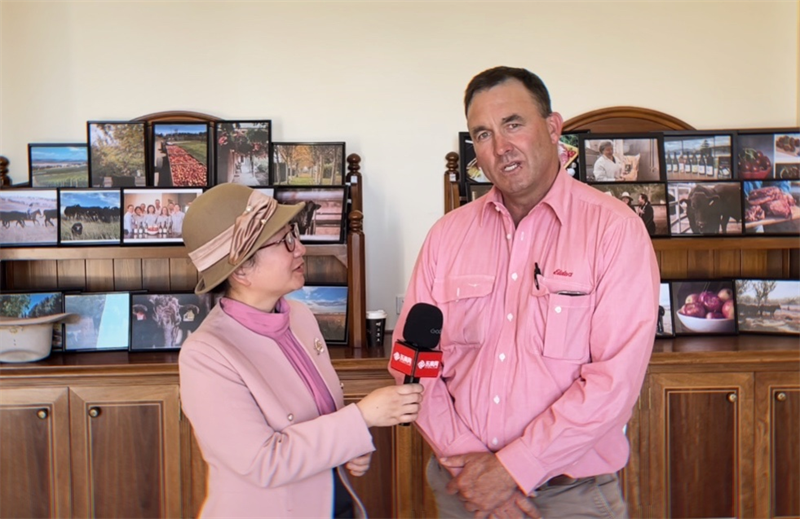 埃尔德斯公司新州牲畜经理尼克(右)接受采访